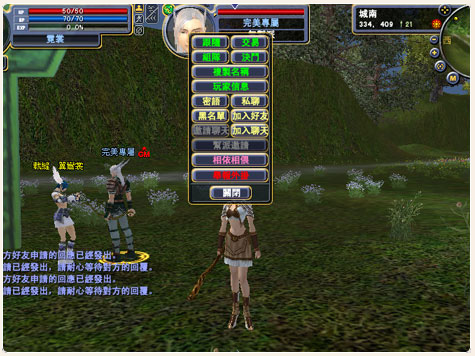 可以通過右鍵功能表向玩家發起 " 決鬥邀請 " 。經對方同意後,雙方開始決鬥。 |