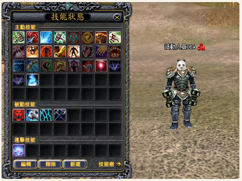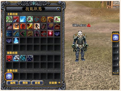 打開技能欄,可以在技能欄最下方的按鈕看到連擊技能編輯按鈕,點擊新建按鈕對連擊技能