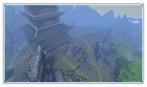 劍風樓共七層高塔,各層間無連接通道,均需飛行而入;